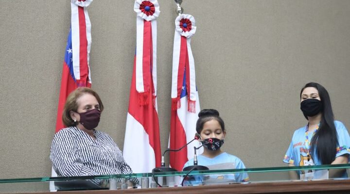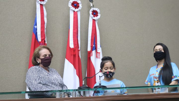 A aluna da Prefeitura de Manaus, Emily Felipe Padron, 11, única representante do Amazonas na fase nacional da Olimpíada Brasileira de Informática, participou da cessão de tempo, na manhã desta terça-feira, 28/9, na Assembleia Legislativa do Estado do Amazonas (Aleam). O evento foi uma forma de divulgar o trabalho realizado pela Secretaria Municipal de Educação (Semed), por meio da escola municipal Ester, localizada na BR-174, Km 08, zona rodoviária, e também de incentivar a estudante, que está no 5º ano do ensino fundamental.