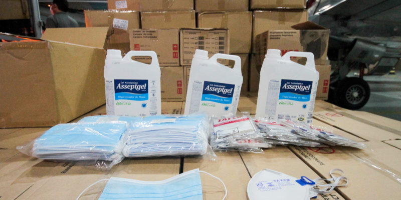 Foram desembarcadas 268 unidades de álcool em gel de 4.3 kg (total de 1152.4 kg), 200 mil máscaras descartáveis e 8 mil máscaras N95. A primeira parte da doação chegou no final da noite da última segunda-feira (20/04). Os insumos serão distribuídos para as unidades da Secretaria de Saúde (Susam) que realizam o atendimento e tratamento de pacientes com Covid-19, na capital.