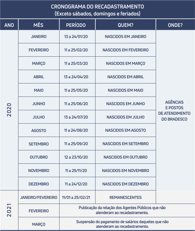 A orientação segue as determinações do Decreto nº 41.350, publicado em 7 de outubro de 2019, no Diário Oficial do Estado (DOE, edição nº 34.100). Com o novo procedimento, os segurados da Amazonprev não precisarão mais comparecer à instituição previdenciária, no Centro, pois o recadastramento no Bradesco será único. Quem tem mais de um vínculo com o Estado precisa se recadastrar apenas uma vez.