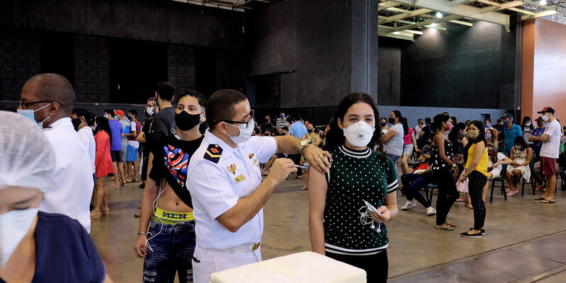 A campanha de vacinação contra a Covid-19 ganha reforço nesta quarta-feira, 18/8, com a abertura de mais um ponto, que funcionará na Arena da Amazônia, na avenida Constantino Nery, Flores, zona Centro-Sul, com entrada pela rua Jornalista Flaviano Limongi, para atendimento exclusivo a pedestres. Com isso, aumenta para seis o número de pontos estratégicos que a Prefeitura de Manaus está disponibilizando até a sexta-feira, 20, para vacinar, com a primeira dose, adolescentes de 12 a 17 anos e o público em geral a partir de 18 anos, e com a segunda dose dos três imunizantes utilizados até o momento (Pfizer, AstraZeneca e CoronaVac).
