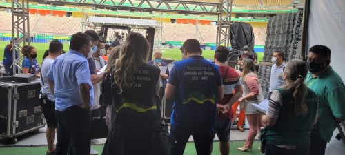 Autoridades da Saúde realizaram, nesta quinta-feira (09/12), uma visita técnica na Arena da Amazônia, em Manaus, para conferir se os protocolos sanitários, apresentados para o Comitê de Enfrentamento da Covid-19, estavam sendo seguidos para o evento Whindersson Nunes, programado para este sábado (11/12).