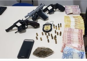 Silva ressaltou que, durante revista no carro, os policiais civis encontram com os elementos dois revólveres calibre 38, uma pistola calibre 40, munições e uma porção de maconha do tipo skunk, pesando 48 gramas, além de R$ 331 em espécie.