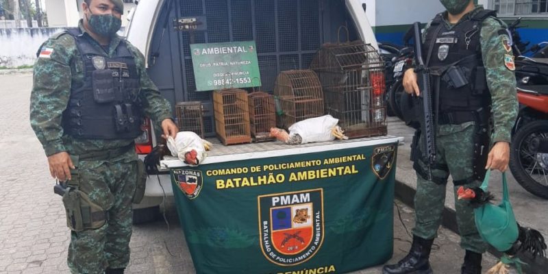 A primeira ação ocorreu por volta das 9h do domingo, durante patrulhamento de rotina da equipe do BPAmb na área do ramal do Leão, na AM-010. Quando passavam por um sítio, os policiais notaram pássaros em gaiolas na frente do local. Desconfiados, entraram em contato com o dono do local, que afirmou ser proprietário das aves e permitiu que os policiais fiscalizassem o sítio.