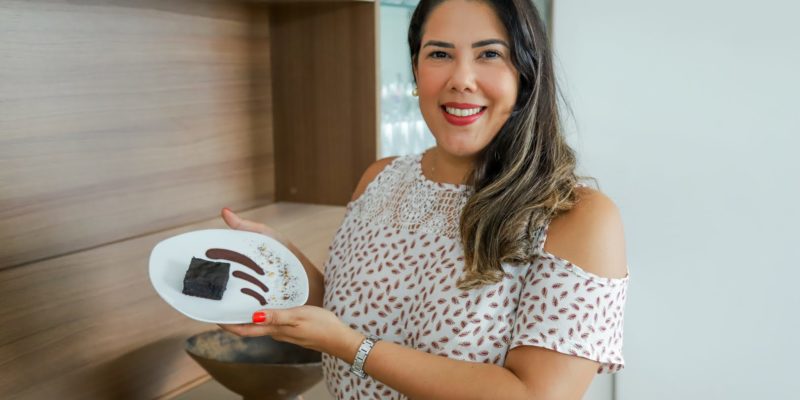 Preparo – Para o preparo dos brownies, a pesquisadora substituiu a farinha de trigo por um mix de farinhas sem glúten, com composição mais nutritiva, o açúcar refinado pelo demerara e, da manteiga pelo açaí e, acrescentou castanha da Amazônia e cacau 100%. Houve também a substituição da essência de baunilha pelo extrato de cumaru, produto natural, amplamente utilizado na confeitaria para aromatizar alimentos. Por não possuir conservantes adicionados à formulação, a durabilidade do produto em média é de 72 horas.