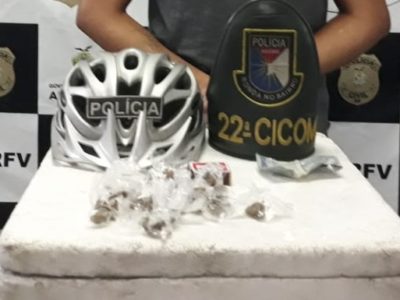 Ciclopatrulheiros da Polícia Militar detêm jovem com drogas em uma caixa de isopor no Parque dos Bilhares