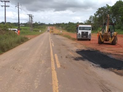 Seinfra realiza obra de recuperação em trecho da AM-070 e pede atenção aos motoristas