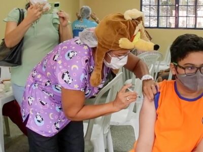‘Estamos recebendo a dose de esperança dos nossos filhos’, diz mãe emocionada, após ver filhos vacinados