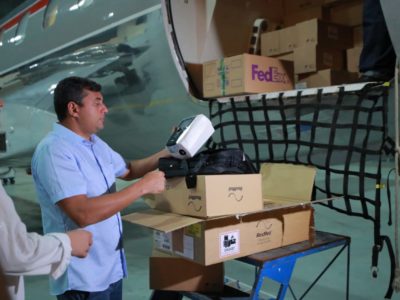 Wilson Lima recebe novo carregamento de respiradores, no aeroporto de Manaus
