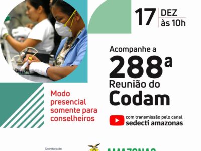 O Conselho de Desenvolvimento do Estado do Amazonas (Codam) se reúne, pela última vez em 2020, na próxima quinta-feira (17/12) às 10h, para ...