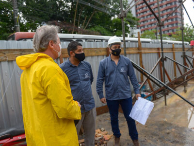 Sob chuva, prefeito vistoria obras de plataforma de ônibus na Constantino Nery e Cime Novo Aleixo