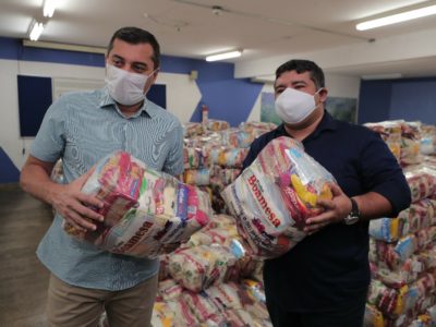 O governador Wilson Lima acompanhou a preparação das dez mil cestas básicas que serão distribuídas para 200 instituições que atendem o público em ...