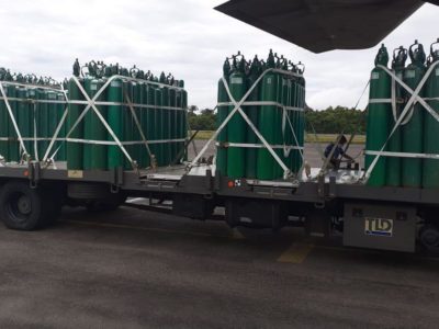O Governo do Amazonas entregou, neste domingo (03/05), com o apoio da Força Aérea Brasileira, 200 cilindros de oxigênio de 10m³ ao Hospital ...