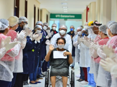 Paciente recebe alta médica do Hospital de Combate ao Covid-19 da Nilton Lins