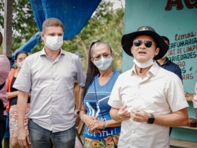 Em visita à comunidade Fé em Deus, no bairro Nova Cidade, zona Norte de Manaus, o prefeito David Almeida e o vice-prefeito e ...