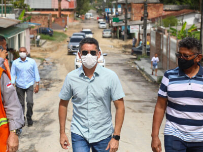 O prefeito David Almeida vistoriou as obras realizadas na comunidade São João, localizada no bairro Lago Azul, zona Norte, onde a Prefeitura de ...