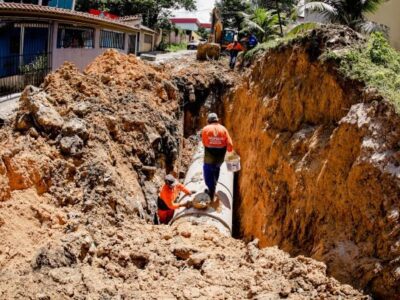 A Prefeitura de Manaus trabalha nesta quinta-feira, 29/7, nas obras de substituição e ampliação de rede de drenagem profunda no conjunto Parque das Laranjeiras, bairro ...