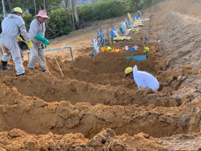 Com a redução do número diários de sepultamentos, a Prefeitura de Manaus começa a retirada de equipamentos pesados que auxiliavam na abertura de ...