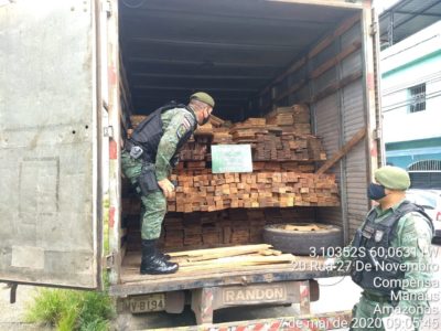 Policiais militares do Batalhão Ambiental apreendem carregamento de madeira serrada irregular na zona norte