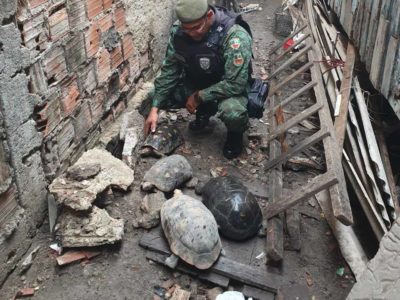 Batalhão Ambiental da Polícia Militar resgata jabutis em residência no Coroado