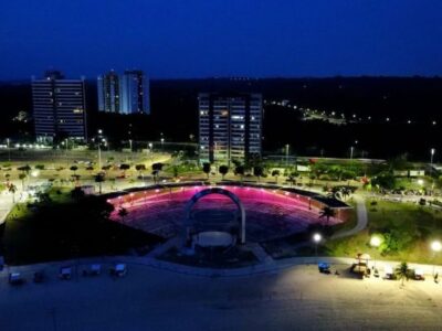 Praia da Ponta Negra tem anfiteatro iluminado em adesão ao ‘Outubro Rosa’