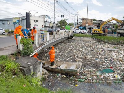 David Almeida enfatiza importância de uma população consciente ao acompanhar serviço de limpeza e transbordo de resíduos em igarapé