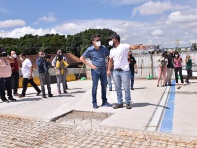 O prefeito David Almeida e o vice-prefeito Marcos Rotta acompanharam a retomada das obras do complexo viário Professora Isabel Victória, na avenida Max ...