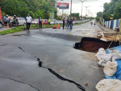 Fluxo de veículos em trecho da avenida Mário Ipiranga é desviado para obra emergencial