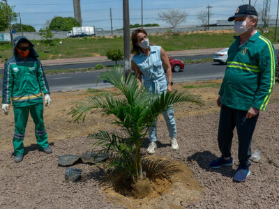 Prefeito e primeira-dama vistoriam obras de recuperação viária e paisagismo no Distrito Industrial