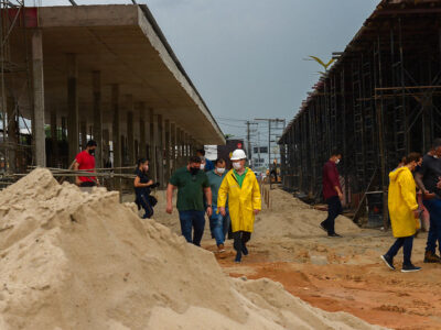 Sob chuva, o prefeito de Manaus, Arthur Virgílio Neto, vistoriou nesta quarta-feira, 21/10, o andamento da construção da estação Arena, na avenida Constantino ...