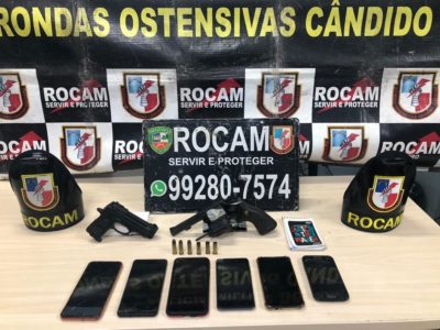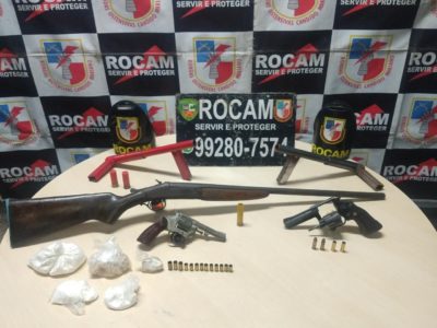 Rocam apreende armas, entorpecentes e detém duas pessoas suspeitas de porte ilegal de arma de fogo e munições
