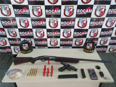 Policiais militares das Rondas Ostensivas Cândido Mariano (Rocam), em apoio a Operação Solimum, detiveram um homem em posse de várias armas de fogo ...