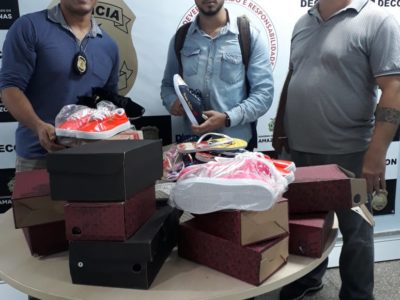 Polícia Civil apreende 44 pares de calçados falsificados em lojas do Centro de Manaus