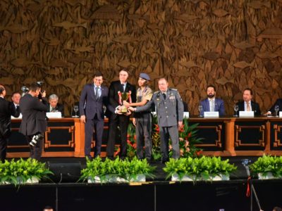 O governador do Amazonas, Wilson Lima, e o presidente Jair Bolsonaro participaram, na manhã desta quinta-feira (25/07), de cerimônia em homenagem aos alunos ...