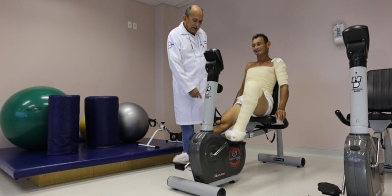 Um diferencial do CTQ do HPS 28 de Agosto, conforme explica o diretor da unidade, são as técnicas de reabilitação, como a cinesioterapia (terapia pelo movimento), que têm a finalidade de diminuir o grau de sequelas. “É pioneiro na Amazônia Ocidental”, ressalta. A cinesioterapia, considerada uma das etapas mais importantes do tratamento, os queimados são submetidos a exercícios físicos específicos, destinados a prevenir, eliminar ou diminuir sequelas.