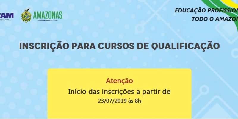 O Governo do Estado, por meio do Centro de Educação Tecnológica do Amazonas (Cetam), abrirá inscrições na capital para diversos cursos de qualificação profissional, na próxima terça-feira (23/07). Essa será a segunda oferta do ano. A primeira aconteceu dia 21 de março.