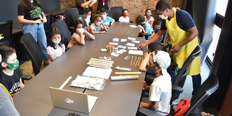 Na ocasião, os pequenos participaram da oficina de criação de um circuito feito com papel alumínio, A4, LED e bateria de 3 volts para ensinar noções básicas de tecnologia e inovação.