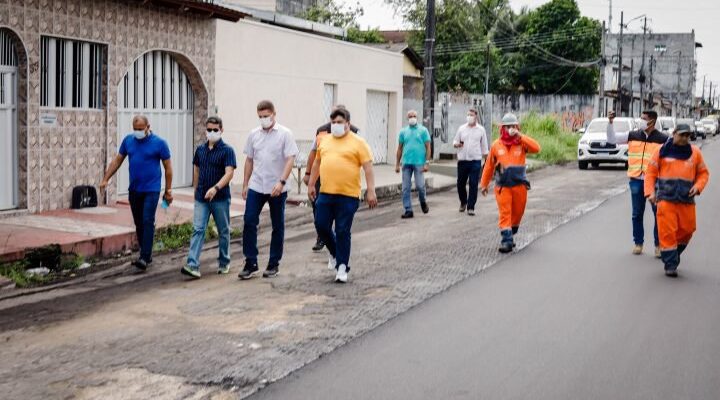 O prefeito de Manaus, David Almeida, e o vice-prefeito e secretário municipal de Infraestrutura, Marcos Rotta, fiscalizaram na manhã desta quinta-feira, 5/8, a obra de recuperação asfáltica na rua Tamoios, bairro Cidade Nova, zona Norte da capital, que há pelo menos 40 anos não recebia revitalização.