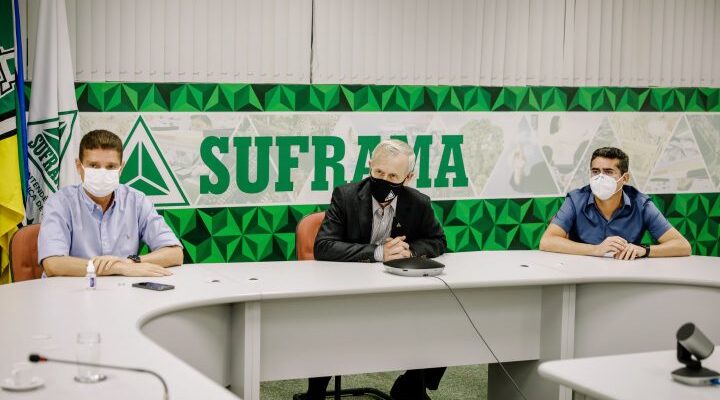 O prefeito David Almeida e o vice Marcos Rotta tiveram uma reunião na manhã desta sexta-feira, 5/3, com o superintendente da Zona Franca de Manaus (Suframa), o general Algacir Polsin, para destravar o andamento das obras de revitalização das ruas do Distrito Industrial, paradas desde dezembro do ano passado. O encontro também contou com representantes das empresas responsáveis pelas intervenções.
