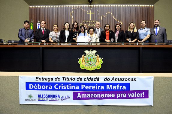 Débora Cristina Pereira Mafra nasceu no dia 7 de outubro de 1969 em Osasco (SP) e está no Amazonas há 27 anos. É graduada em Direito pela Unip e pós-graduada em Direito Tributário pela Ufam. Tem dois filhos, Henrique e Paula, que estiveram na solenidade ao lado de outros familiares da homenageada.