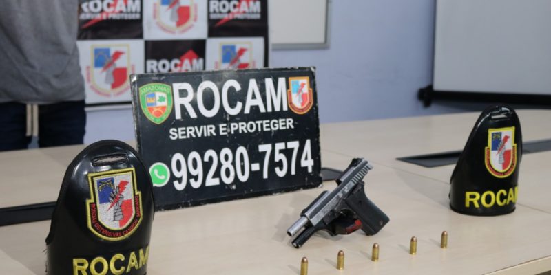 Durante operação da Polícia Militar do Amazonas nos bairros da zona sul de Manaus, policiais militares das Rondas Ostensivas Cândido Mariano (Rocam) prenderam o ex-presidiário Leonardo Siqueira Valente, 19, na tarde desta quarta-feira (17/07). Com ele, foi encontrada uma pistola calibre 40 milímetros e cinco munições intactas. A prisão ocorreu no beco Independência, bairro Raiz, após a guarnição receber denúncias de que haviam homens armados no local.