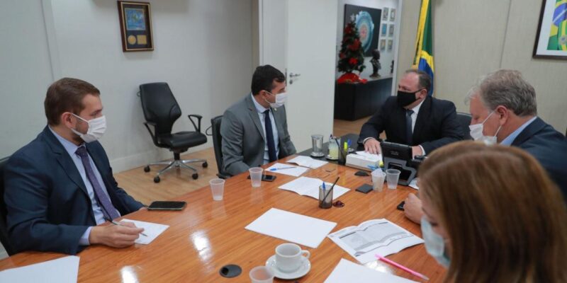 Em reunião com o ministro da Saúde, Eduardo Pazuello, nesta quarta-feira (06/01), em Brasília, o governador Wilson Lima assegurou o envio de monitores, respiradores, medicamentos e recursos humanos para fortalecer a estrutura de abertura de novos leitos na rede estadual de saúde no enfrentamento à Covid-19.