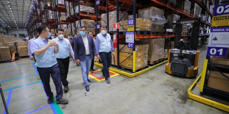 Durante visita à fábrica da Samsung, no Distrito Industrial, nesta terça-feira (23/03), o governador Wilson Lima destacou que o Estado vem trabalhando para criar um ambiente favorável para atrair investimentos para o Polo Industrial de Manaus (PIM). Ele ressaltou que, em função do compromisso da indústria com os protocolos sanitários necessários no controle da pandemia da Covid-19, o Governo do Amazonas não precisou suspender as atividades do setor.