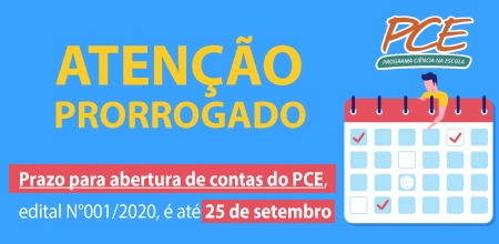 A Fundação de Amparo à Pesquisa do Estado do Amazonas (Fapeam) prorrogou até 25 de setembro, o prazo para abertura de contas, no Bradesco, para professores e estudantes do Programa Ciência na Escola (PCE), edital N° 001/2020.
