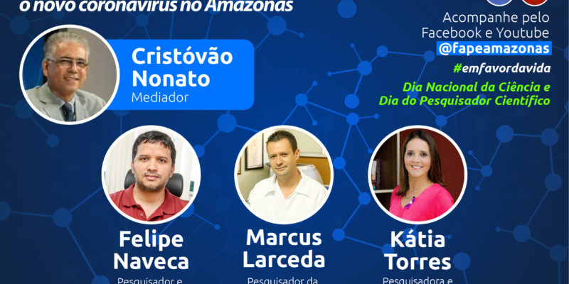 No dia oito de julho, data escolhida para celebrar o Dia Nacional da Ciência e Dia do Pesquisador Científico, a Fundação de Amparo à Pesquisa do Estado do Amazonas (Fapeam) realiza a live “Em favor da vida: pesquisas sobre o novo coronavírus no Amazonas”, às 10h, com transmissão ao vivo pelo canal do Youtube e Facebook da Fapeam.