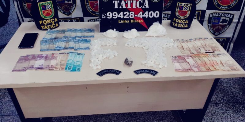 Policiais militares da Força Tática, no sábado (22/08), detiveram um homem de 44 anos, e apreenderam dois adolescentes de 17 anos, por envolvimento com o tráfico de drogas, no bairro Compensa 2, zona oeste.