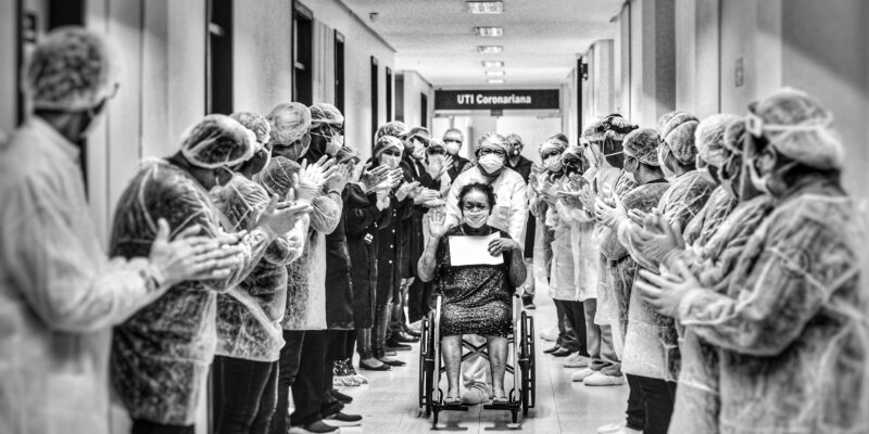 A imagem ganhadora do concurso foi feita em abril de 2020 e mostra Maria de Nazaré Araújo, 71, que venceu a batalha contra o coronavírus, deixando uma unidade estadual de saúde após receber alta médica. Na fotografia, Maria de Nazaré atravessa o “corredor da vitória”, sob aplausos da equipe de médicos e enfermeiros do Hospital de Combate à Covid-19 (Nilton Lins), montado pelo Governo do Amazonas para atender exclusivamente pacientes de coronavírus.