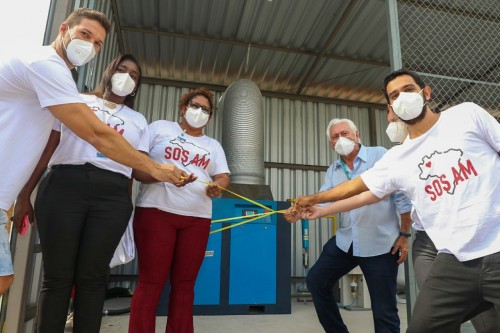 A campanha SOS AM vem auxiliando o poder público em meio à crise pandêmica. Representando o grupo, Mirela Hoenicke explica que o trabalho é desenvolvido por voluntários e tem recebido ajuda até de fora do Brasil. “A gente está trabalhando com doações de brasileiros, de todos os cantos do país, com doações também de fora, então essa usina foi fruto dessas doações, que proporcionaram que a gente pudesse comprar essa (usina), como outras que a gente também fez a aquisição”, explicou Mirela.