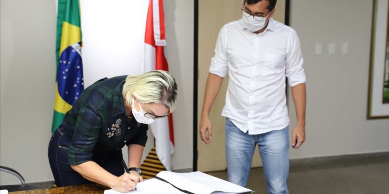 O governador Wilson Lima empossou, no final da tarde desta quinta-feira (14), a nova titular da Secretaria de Estado de Assistência Social (Seas), Maricilia Teixeira da Costa. Numa cerimônia simples e rápida, seguindo as recomendações de distanciamento social em razão da pandemia da Covid-19, a assinatura do termo de posse ocorreu na sede do Governo do Amazonas, na Compensa, zona oeste de Manaus.