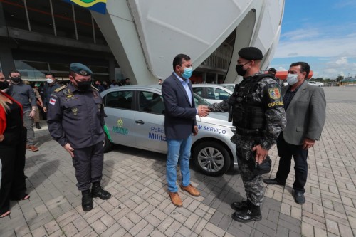 O governador Wilson Lima entregou, nesta segunda-feira (23/11), no Podium da Arena da Amazônia, 61 veículos para renovação de parte da frota das Polícias Civil e Militar do Amazonas. As viaturas são destinadas ao serviço policial em 27 cidades do estado, incluindo Manaus. O investimento é da ordem de R$ 2 milhões, por meio da Secretaria de Segurança Pública (SSP-AM).