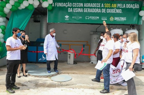Uma miniusina geradora de oxigênio com capacidade de produção de 27 metros cúbicos por hora foi inaugurada, na manhã desta quinta-feira (11/02), pelo Governo do Amazonas, na Fundação Centro de Controle de Oncologia do Estado do Amazonas (FCecon). O equipamento instalado na unidade é uma doação da campanha SOS AM, composta por grupos da sociedade civil e empresários, e irá somar no atendimento da demanda do insumo na fundação.